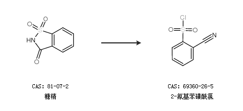 1.通过糖精合成2-氰基苯磺酰氯