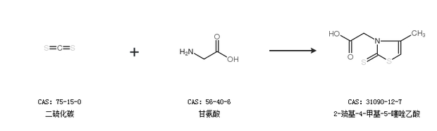 1.通过二硫化碳和甘氨酸合成2-巯基-4-甲基-5-噻唑乙酸