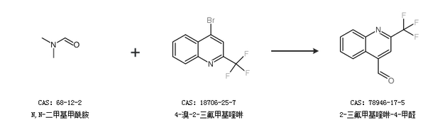 1.通过N,N-二甲基甲酰胺和4-溴-2-三氟甲基喹啉合成2-三氟甲基喹啉-4-甲醛