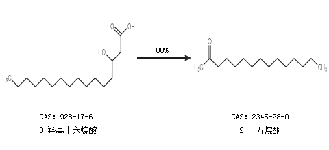 2.通过3-羟基十六烷酸合成2-十五烷酮,收率约80%;