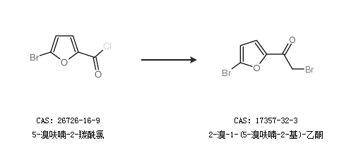 2.通过5-溴呋喃-2-羰酰氯合成2-溴-1-(5-溴呋喃-2-基)-乙酮