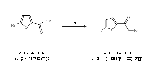 1.通过1-(5-溴-2-呋喃基)乙酮合成2-溴-1-(5-溴呋喃-2-基)-乙酮,收率约63%;