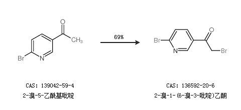 1.通过2-溴-5-乙酰基吡啶合成2-溴-1-(6-溴-3-吡啶)乙酮,收率约69%;