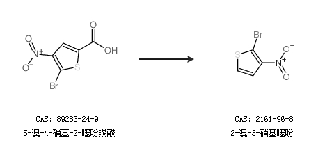 1.通过5-溴-4-硝基-2-噻吩羧酸合成2-溴-3-硝基噻吩