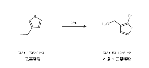1.通过3-乙基噻吩合成2-溴-3-乙基噻吩,收率约98%;