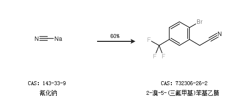 1.通过氰化钠合成2-溴-5-(三氟甲基)苯基乙腈,收率约60%;