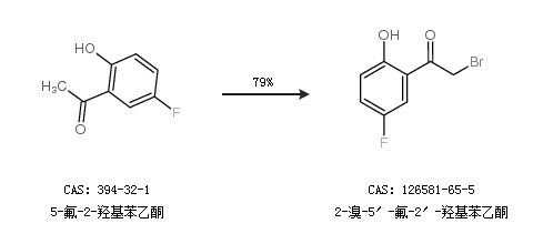 1.通过5-氟-2-羟基苯乙酮合成2-溴-5′-氟-2′-羟基苯乙酮,收率约79%;