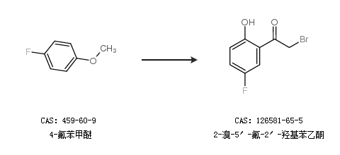 2.通过4-氟苯甲醚合成2-溴-5′-氟-2′-羟基苯乙酮