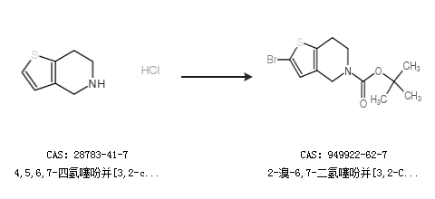 2.通过4,5,6,7-四氢噻吩并[3,2-c]吡啶盐酸盐合成2-溴-6,7-二氢噻吩并[3,2-C]吡啶--5(4H)-甲酸叔丁酯