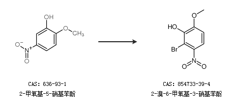 2.通过2-甲氧基-5-硝基苯酚合成2-溴-6-甲氧基-3-硝基苯酚