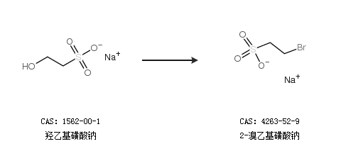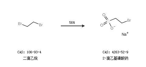 1.通过二溴乙烷合成2-溴乙基磺酸钠,收率约56%;