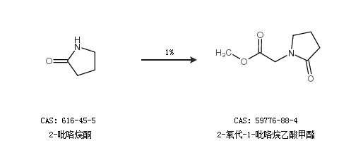 2.通过2-吡咯烷酮合成2-氧代-1-吡咯烷乙酸甲酯,收率约1%;