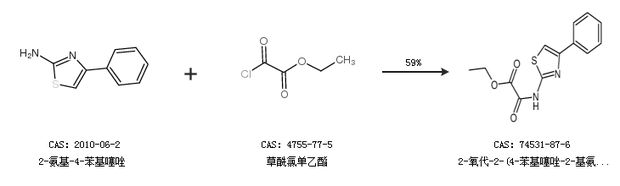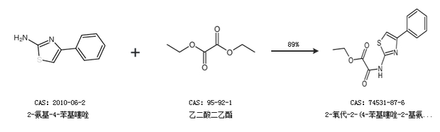 2.通过2-氨基-4-苯基噻唑和草酰氯单乙酯合成2-氧代-2-(4-苯基噻唑-2-基氨基)乙酸乙酯,收率约59%;