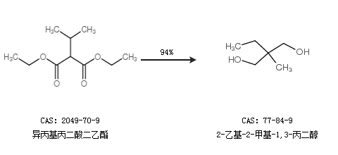 1.通过异丙基丙二酸二乙酯合成2-乙基-2-甲基-1,3-丙二醇,收率约94%;