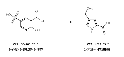 2.通过2-羟基-5-硫吡啶-3-羧酸合成2-乙基-4-羧基吡唑