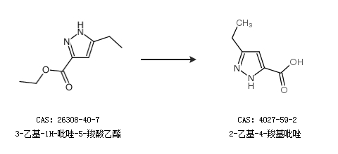 1.通过3-乙基-1H-吡唑-5-羧酸乙酯合成2-乙基-4-羧基吡唑