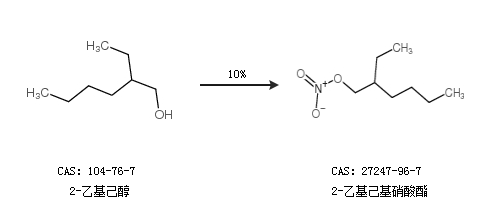 英文别名 Ethylhexyl nitrate;nitric ester of 2-ethyl-1-hexanol;2-ethylhexanol nitrate;3-nitrooxymethyl-heptane;2-Aethyl-hexylnitrat;2-Ethylhexyl Nitrate;NITRIC ACID,2-ETHYLHEXYL ESTER;2-Ethylhexylnitrate;DSSTox_CID_7928;