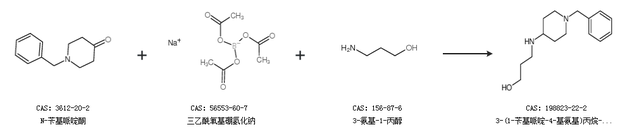2.通过N-苄基哌啶酮、三乙酰氧基硼氢化钠和3-氨基-1-丙醇合成3-(1-苄基哌啶-4-基氨基)丙烷-1-醇