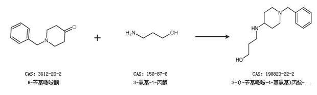 1.通过N-苄基哌啶酮和3-氨基-1-丙醇合成3-(1-苄基哌啶-4-基氨基)丙烷-1-醇