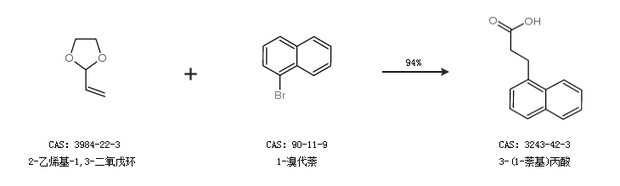 1.通过2-乙烯基-1,3-二氧戊环和1-溴代萘合成3-(1-萘基)丙酸,收率约94%;