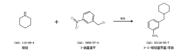 1.通过哌啶和3-硝基溴苄合成3-(1-哌啶基甲基)苯胺,收率约90%;