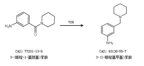 2.通过3-(哌啶-1-基羰基)苯胺合成3-(1-哌啶基甲基)苯胺,收率约70%;