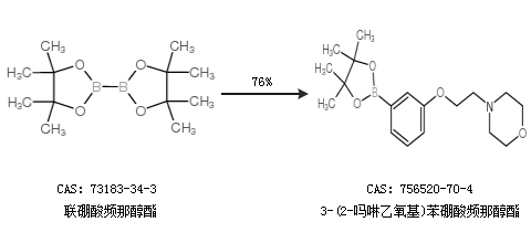 2.通过联硼酸频那醇酯合成3-(2-吗啉乙氧基)苯硼酸频那醇酯,收率约76%;
