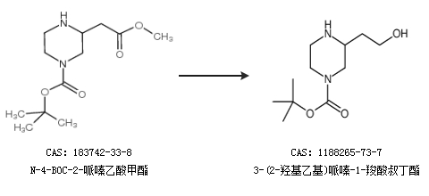 1.通过N-4-BOC-2-哌嗪乙酸甲酯合成3-(2-羟基乙基)哌嗪-1-羧酸叔丁酯