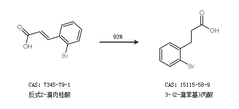 1.通过反式2-溴肉桂酸合成3-(2-溴苯基)丙酸,收率约93%;