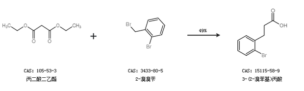 2.通过丙二酸二乙酯和2-溴溴苄合成3-(2-溴苯基)丙酸,收率约49%;