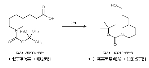 1.通过1-叔丁氧羰基-3-哌啶丙酸合成3-(3-羟基丙基)哌啶-1-羧酸叔丁酯,收率约96%;