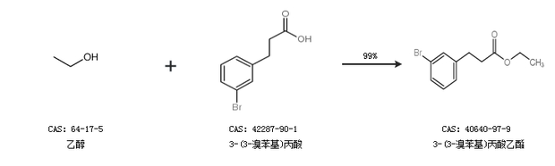 2.通过乙醇合成3-(3-溴苯基)丙酸乙酯,收率约99%;