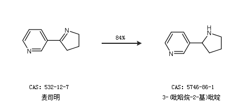 1.通过麦司明合成3-(吡咯烷-2-基)吡啶,收率约84%;