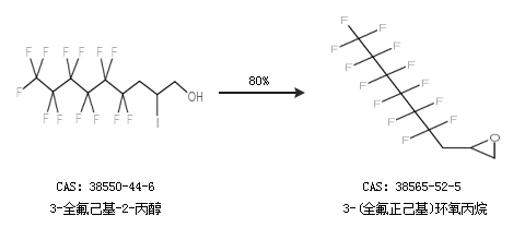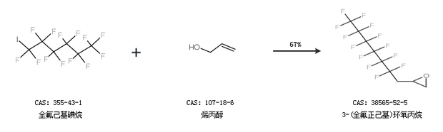 2.通过全氟己基碘烷和烯丙醇合成3-(全氟正己基)环氧丙烷,收率约67%;