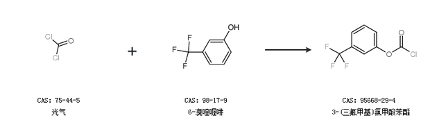 英文别名 3-(trifluoromethyl)phenyl carbonochloridate;3-trifluoromethylphenyl chlorocarbonate;m-trifluorophenyl chloroformate;m-(trifluoromethyl)phenyl chloroformate;3-trifluoromethyl phenyl chloroformate;