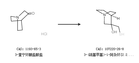 2.通过3-奎宁环酮盐酸盐合成3-(疏基甲基)-1-阿杂环[2.2.2]辛烷-3-醇