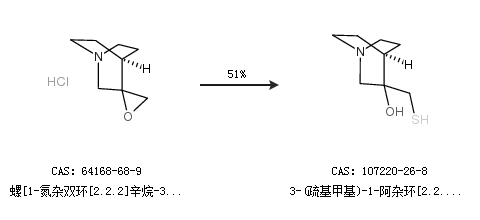 1.通过螺[1-氮杂双环[2.2.2]辛烷-3,2’-环氧乙烷] 盐酸盐合成3-(疏基甲基)-1-阿杂环[2.2.2]辛烷-3-醇,收率约51%;