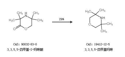 1.通过3,3,5,5-四甲基-2-吗啉酮合成3,3,5,5-四甲基吗啉,收率约29%;