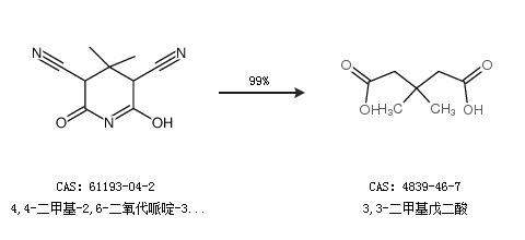 1.通过4,4-二甲基-2,6-二氧代哌啶-3,5-二甲腈合成3,3-二甲基戊二酸,收率约99%;