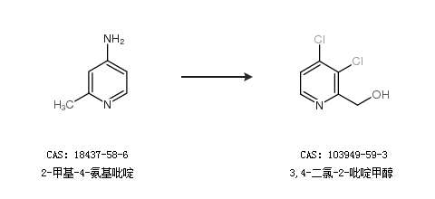 2.通过2-甲基-4-氨基吡啶合成3,4-二氯-2-吡啶甲醇