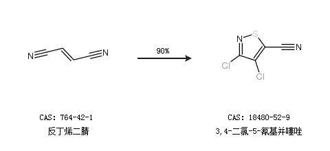 1.通过反丁烯二腈合成3,4-二氯-5-氰基并噻唑,收率约90%;