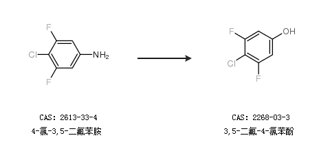 1.通过4-氯-3,5-二氟苯胺合成3,5-二氟-4-氯苯酚
