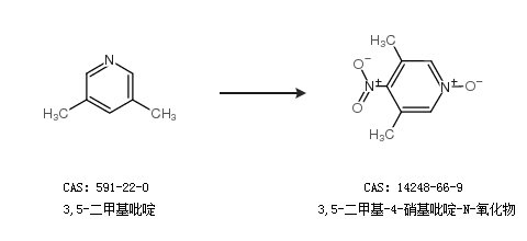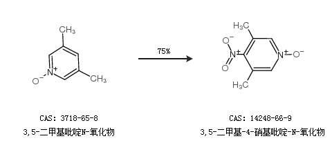 1.通过3,5-二甲基吡啶N-氧化物合成3,5-二甲基-4-硝基吡啶-N-氧化物,收率约75%;