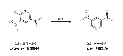 1.通过2-氯-3,5-二硝基吡啶合成3,5-二硝基吡啶,收率约56%;
