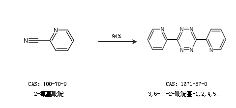 1.通过2-氰基吡啶合成3,6-二-2-吡啶基-1,2,4,5-四嗪,收率约94%;