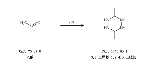 1.通过乙醛合成3,6-二甲基-1,2,4,5-四嗪烷,收率约76%;