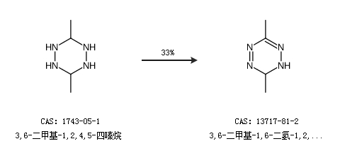 1.通过3,6-二甲基-1,2,4,5-四嗪烷合成3,6-二甲基-1,6-二氢-1,2,4,5-四嗪,收率约33%;