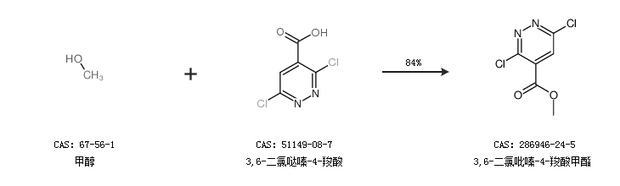 1.通过甲醇和3,6-二氯哒嗪-4-羧酸合成3,6-二氯吡嗪-4-羧酸甲酯,收率约84%;