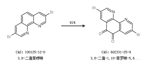 1.通过3,8-二溴菲啰啉合成3,8-二溴-1,10-菲罗啉-5,6-二酮,收率约91%;