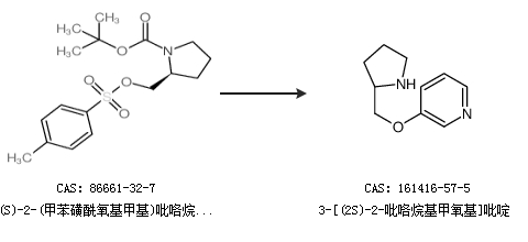 2.通过(S)-2-(甲苯磺酰氧基甲基)吡咯烷-1-甲酸叔丁酯合成3-[(2S)-2-吡咯烷基甲氧基]吡啶